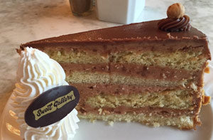 Layers of Sweet Gallery Royale Sponge, vanilla sponge, and hazelnut buttercream.